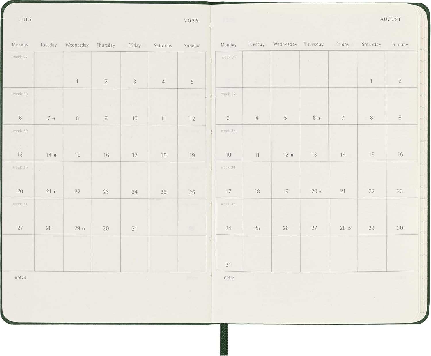 Ежедневник Moleskine Classic 2026, Pocket (9×14 см), зеленый.