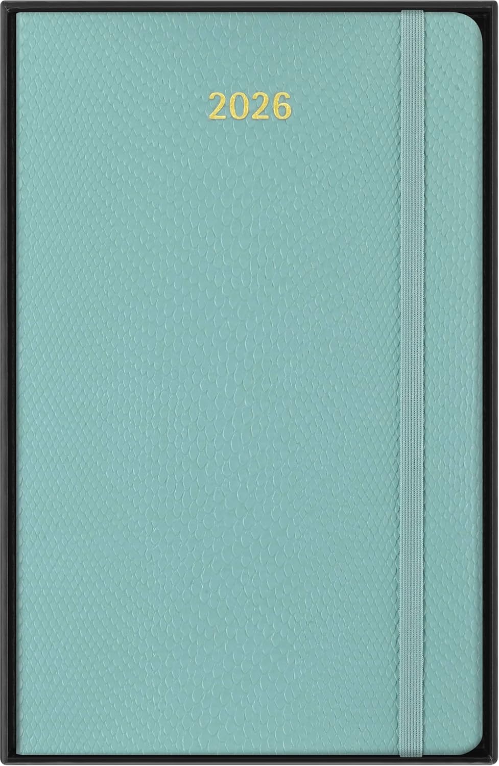 • Тиснёная текстура с имитацией змеиной кожи придаёт еженедельнику утончённый и выразительный вид.